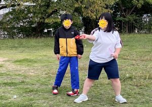 年氏下の児童に、シャボン玉のやり方を教えてくれていました☺️