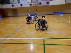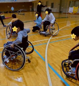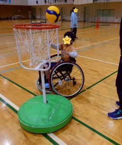 子供たちのほうが上手に車いすを操作し、ゴールに入れていました😆