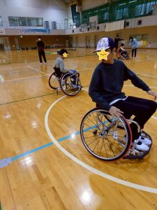 車いすバスケが休憩の時は、車いすに乗ったりもしました!