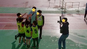 走る前にみんなで「えい!えい!オ―――――――!!」